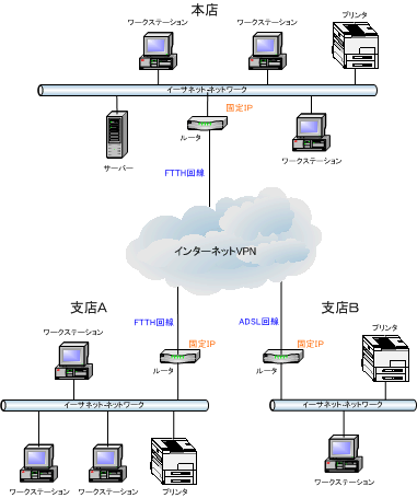 FTTH回線(本店、支店A) ※光ケーブル
